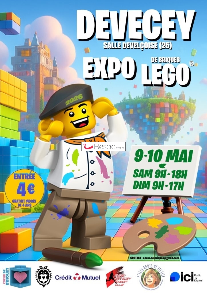 ExpositionsL'association Coeur de Briques organise une exposition Lego à la Maison Develçoise de Devecey (25870) les 09 et 10 Mai 2026.